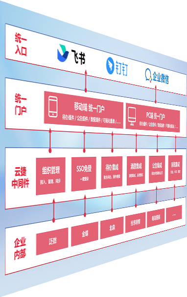 对协作平台提供支持服务,,,,支持企业应用与协作平台对接,,,,包含组织同步、、消息集成、、、、待办集成等。。。。支持目前主流的协作平台:钉钉、、、、企微和飞书。。。。